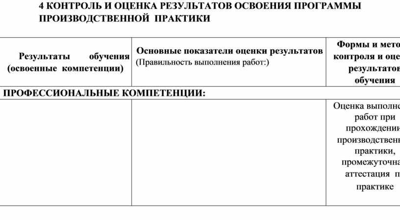 1 ПАСПОРТ РАБОЧЕЙ ПРОГРАММЫ ПРОИЗВОДСТВЕННОЙ ПРАКТИКИ................... 4