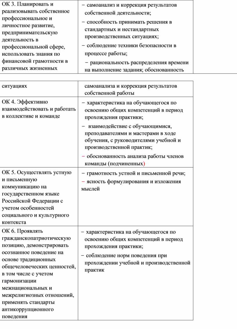 − характеристика на обучающегося по освоению общих компетенций в период прохождения практики; − взаимодействие с обучающимися, преподавателями и мастерами в ходе обучения, с руководителями учебной и производственной практик; − обоснованность анализа работы членов команды (подчиненных) |