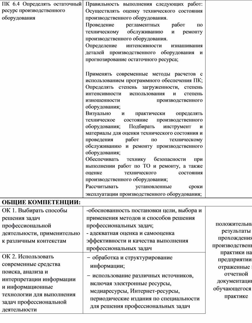 ПК 6.4 Определять остаточный ресурс производственного оборудования |