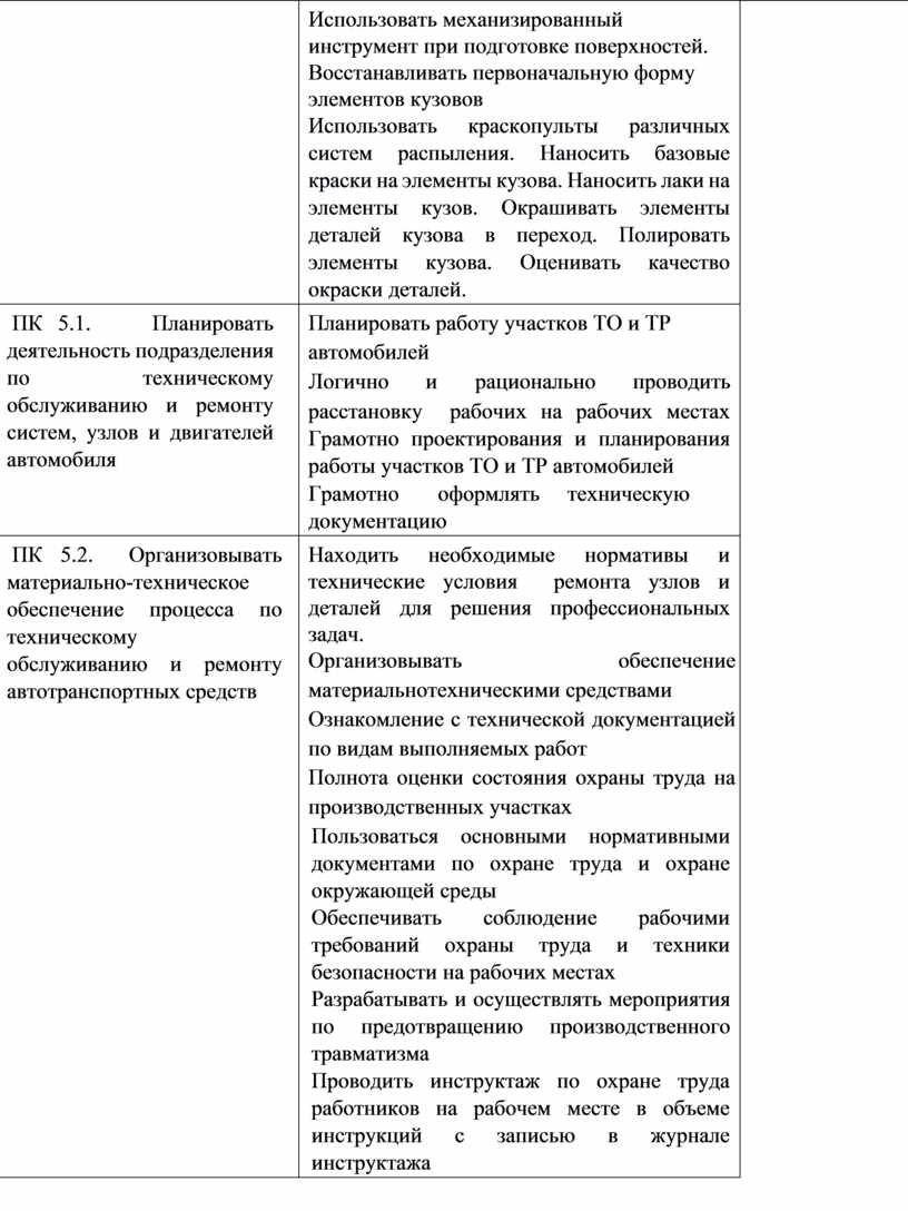ПК 5.3. Осуществлять организацию и контроль деятельности персонала подразделения по техническому обслуживанию и ремонту автотранспортных средств |