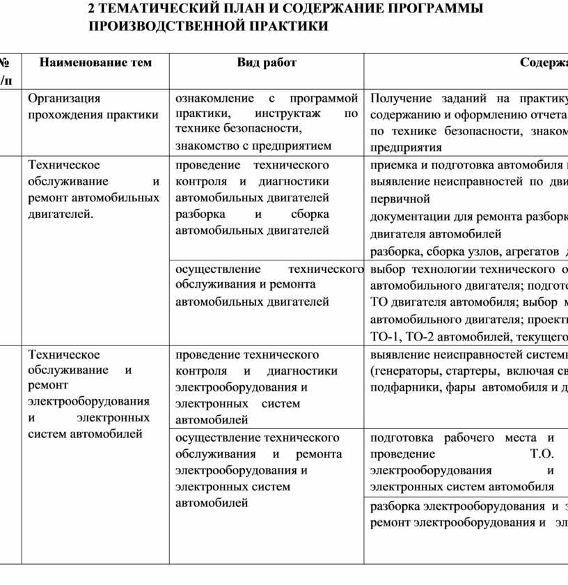 2 ТЕМАТИЧЕСКИЙ ПЛАН И СОДЕРЖАНИЕ ПРОГРАММЫ ПРОИЗВОДСТВЕННОЙ ПРАКТИКИ...................................................................................................................................... 8