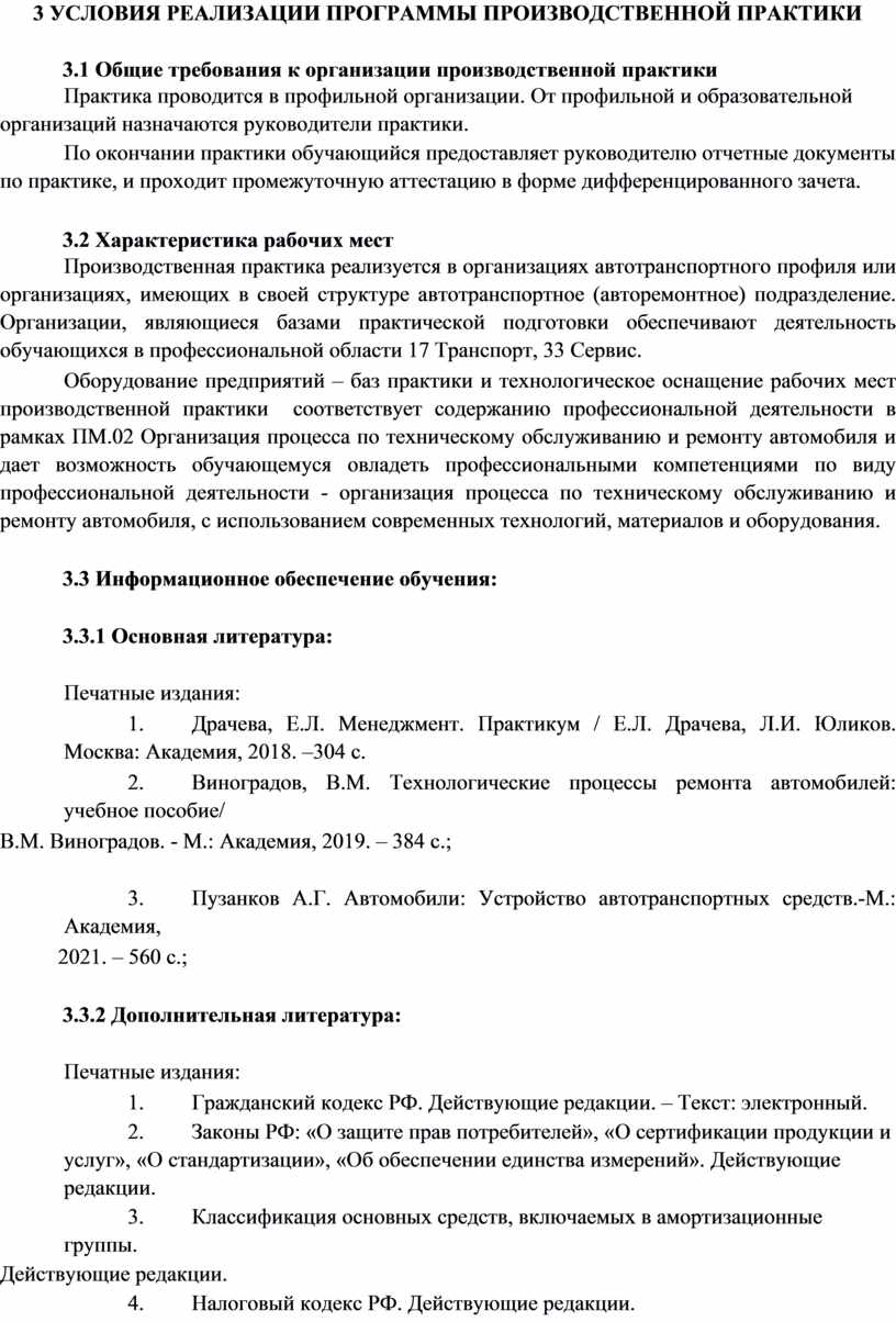 3 УСЛОВИЯ РЕАЛИЗАЦИИ ПРОГРАММЫ ПРОИЗВОДСТВЕННОЙ ПРАКТИКИ.......... 12