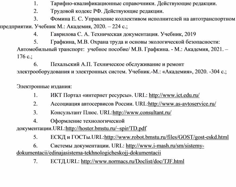 9. Графкина, М.В. Охрана труда и основы экологической безопасности: Автомобильный транспорт: учебное пособие/ М.В. Графкина. - М.: Академия, 2021. – 176 с.;