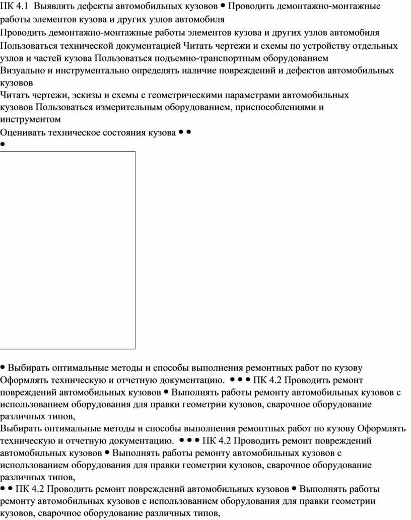 ПК 4.1. Выявлять дефекты автомобильных кузовов;