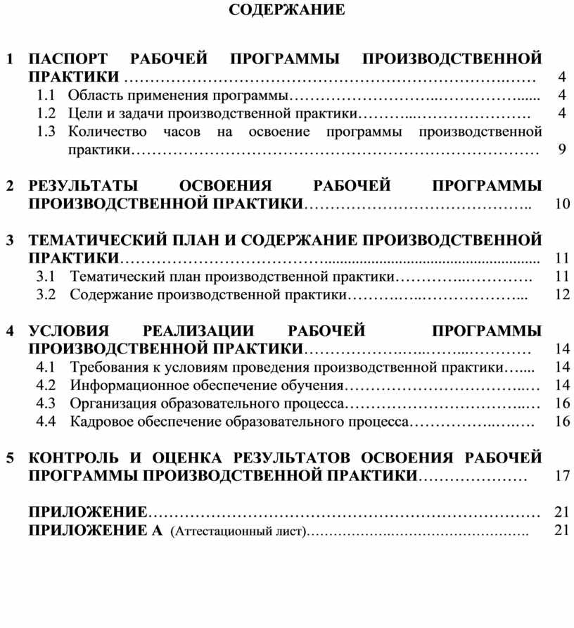 ПАСПОРТ рабочей ПРОГРАММЫ производственной ПРАКТИКИ ……………………………………………………………….…… |