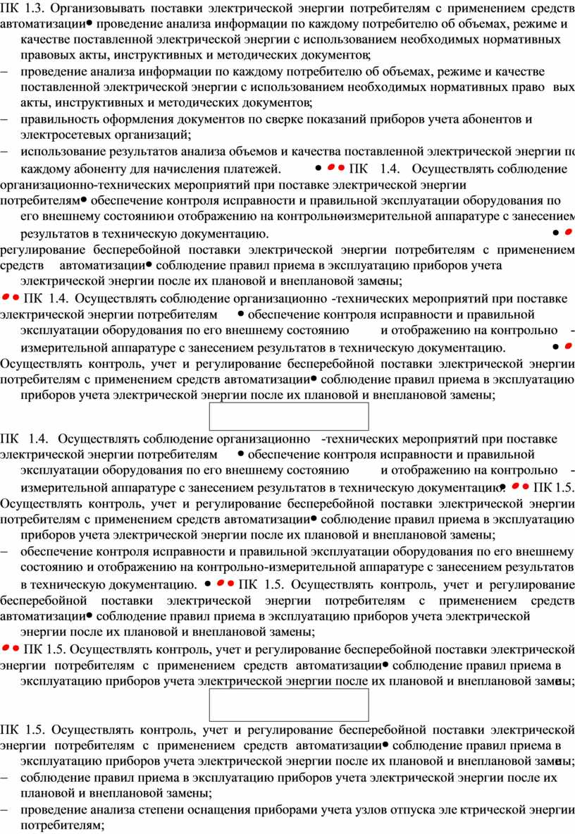 ПК 1.4. Осуществлять соблюдение организационно-технических мероприятий при поставке электрической энергии потребителям |