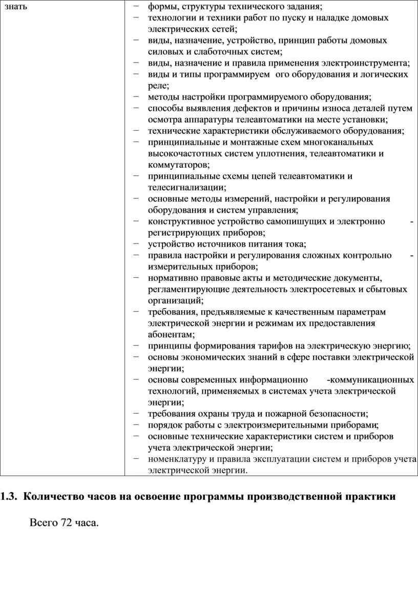 Рабочая программа производственной практики является частью основной образовательной программы в соответствии с ФГОС среднего профессионального образования по подготовке специалистов среднего звена по специальности 08.02.09 Монтаж, наладка и эксплуатация электрооборудования промышленных и гражданских зданий в части освоения основного вида профессиональной деятельности (ВПД): Выполнение работ по вводу домовых силовых и слаботочных систем в эксплуатацию с применением средств автоматизации и соответствующих профессиональных компетенций (ПК):