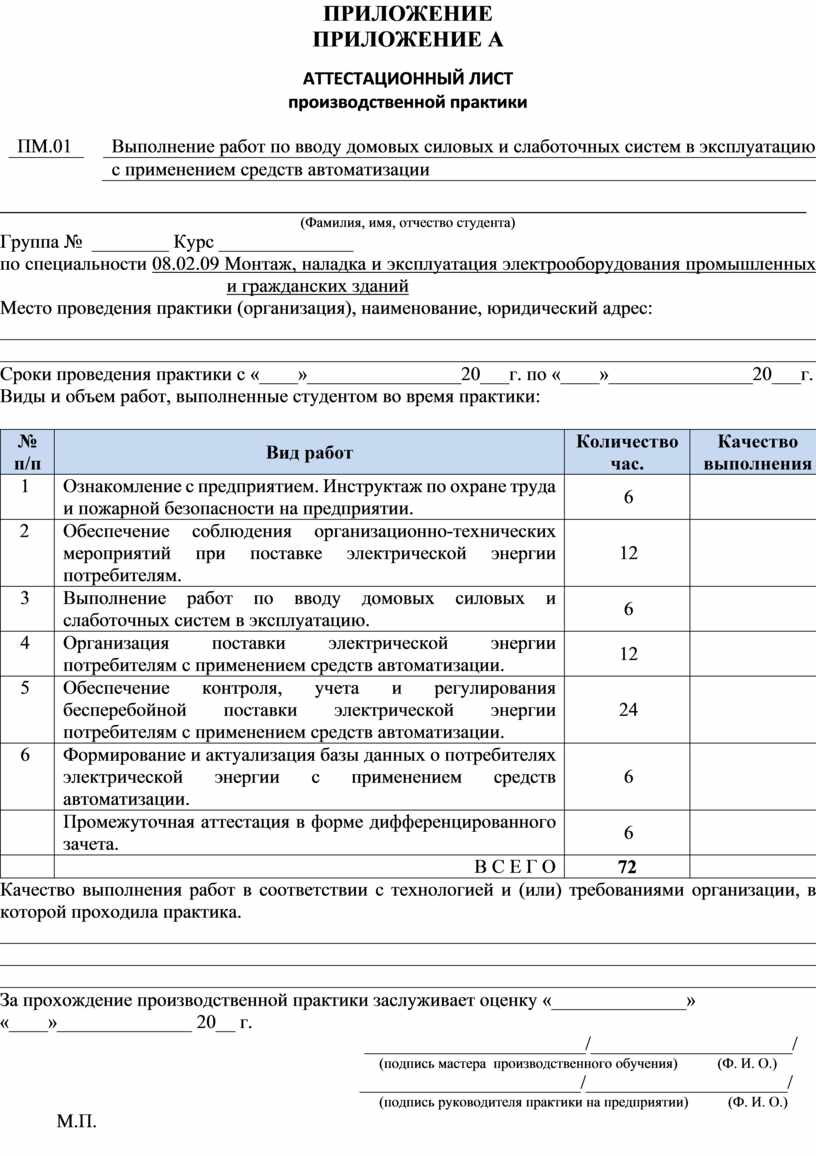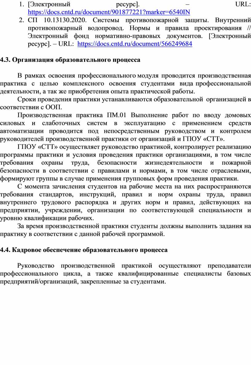 Производственная практика ПМ.01 Выполнение работ по вводу домовых силовых и слаботочных систем в эксплуатацию с применением средств автоматизации проводится под непосредственным руководством и контролем руководителей производственной практики от организаций и ГПОУ «СТТ».