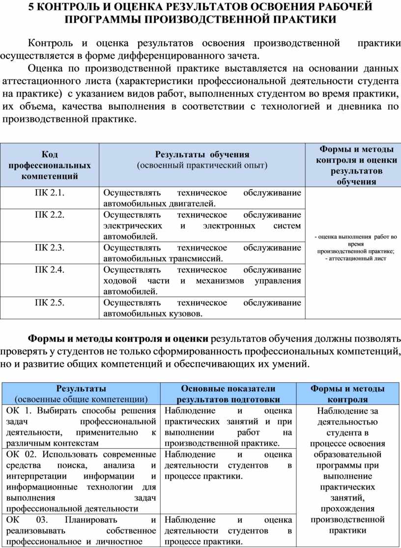 Контроль и оценка результатов освоения производственной практики осуществляется в форме дифференцированного зачета.