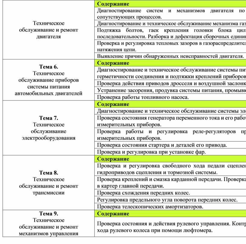 Тема 10. Техническое обслуживание ходовой части |