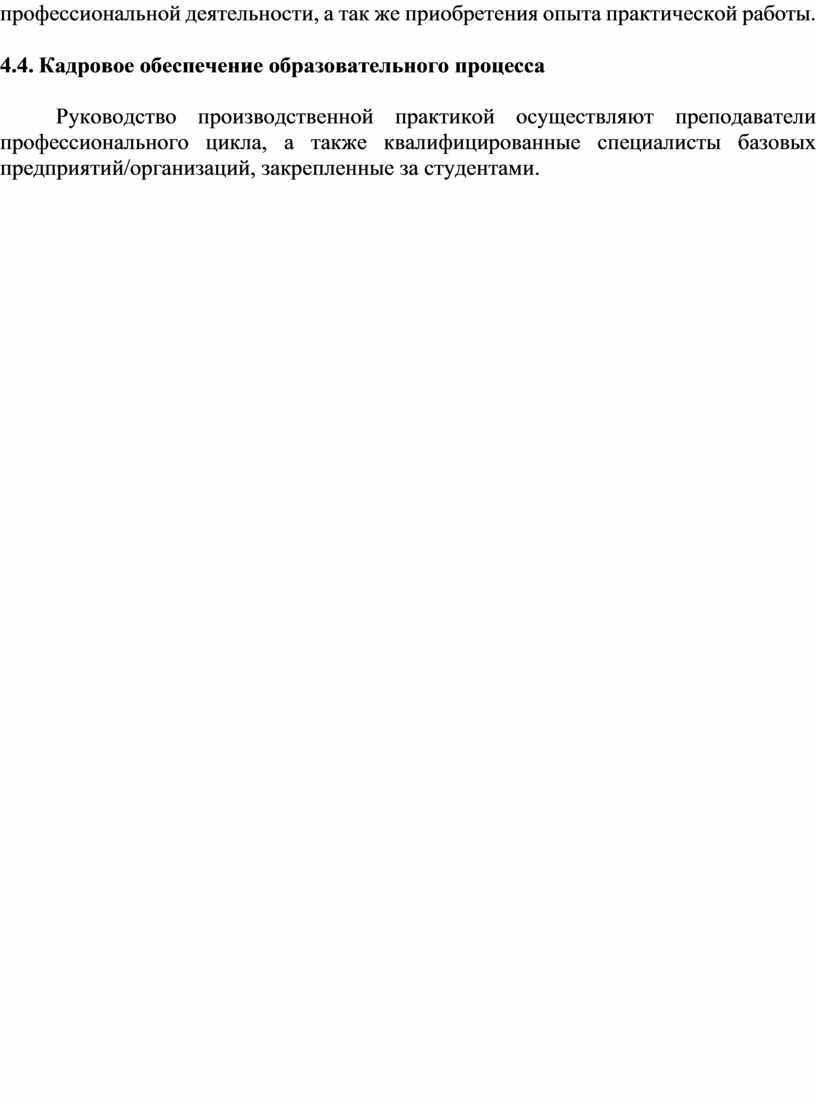 4.4. Кадровое обеспечение образовательного процесса