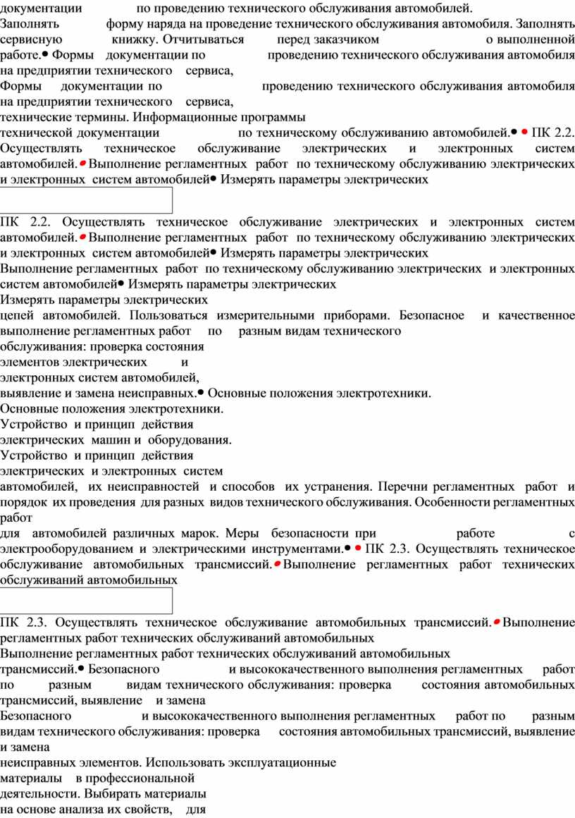 ПМ.02 ТЕХНИЧЕСКОЕ ОБСЛУЖИВАНИЕ АВТОТРАНСПОРТА СОГЛАСНО ТРЕБОВАНИЯМ НОРМАТИВНО-ТЕХНИЧЕСКОЙ ДОКУМЕНТАЦИИ