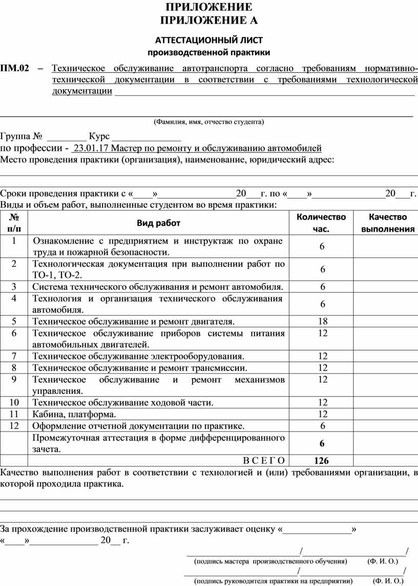 - оценка выполнения работ во время производственной практике; - аттестационный лист