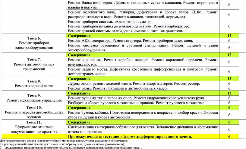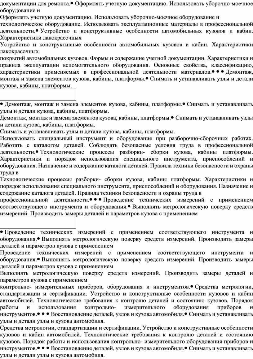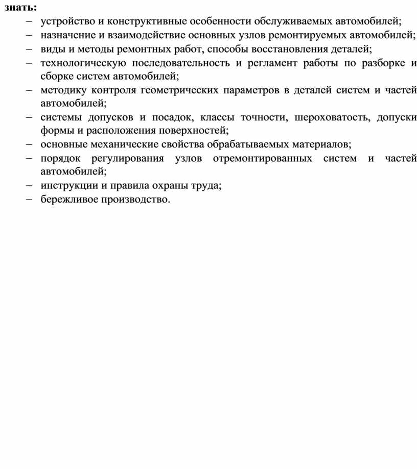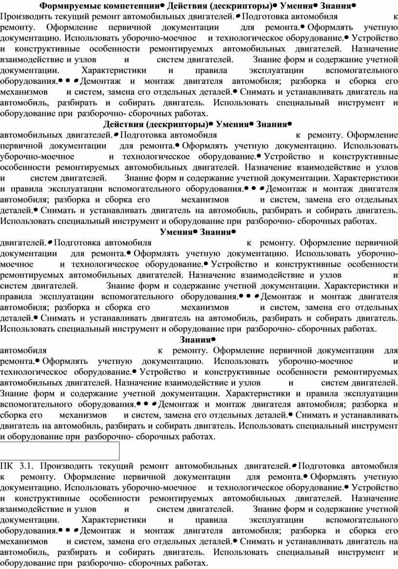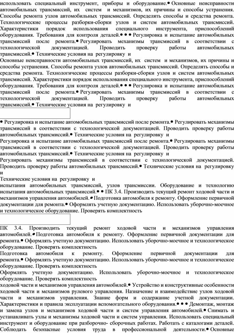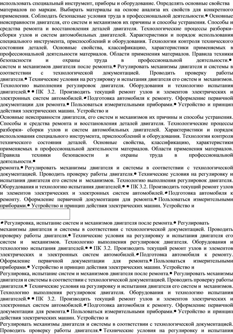- рабочей программы ПМ.03 Текущий ремонт различных типов автомобилей в соответствии с требованиями технологической документации.