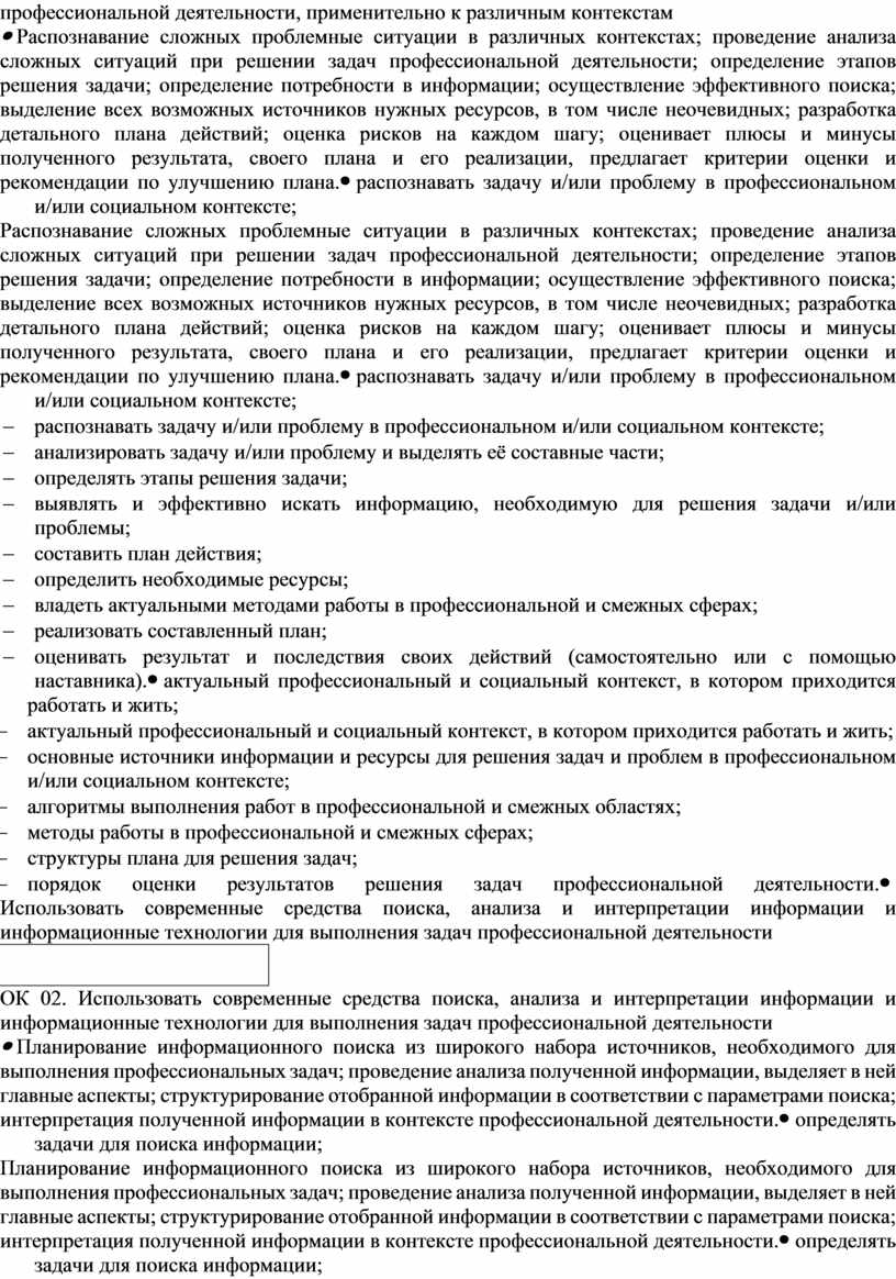 ОК 02. Использовать современные средства поиска, анализа и интерпретации информации и информационные технологии для выполнения задач профессиональной деятельности |