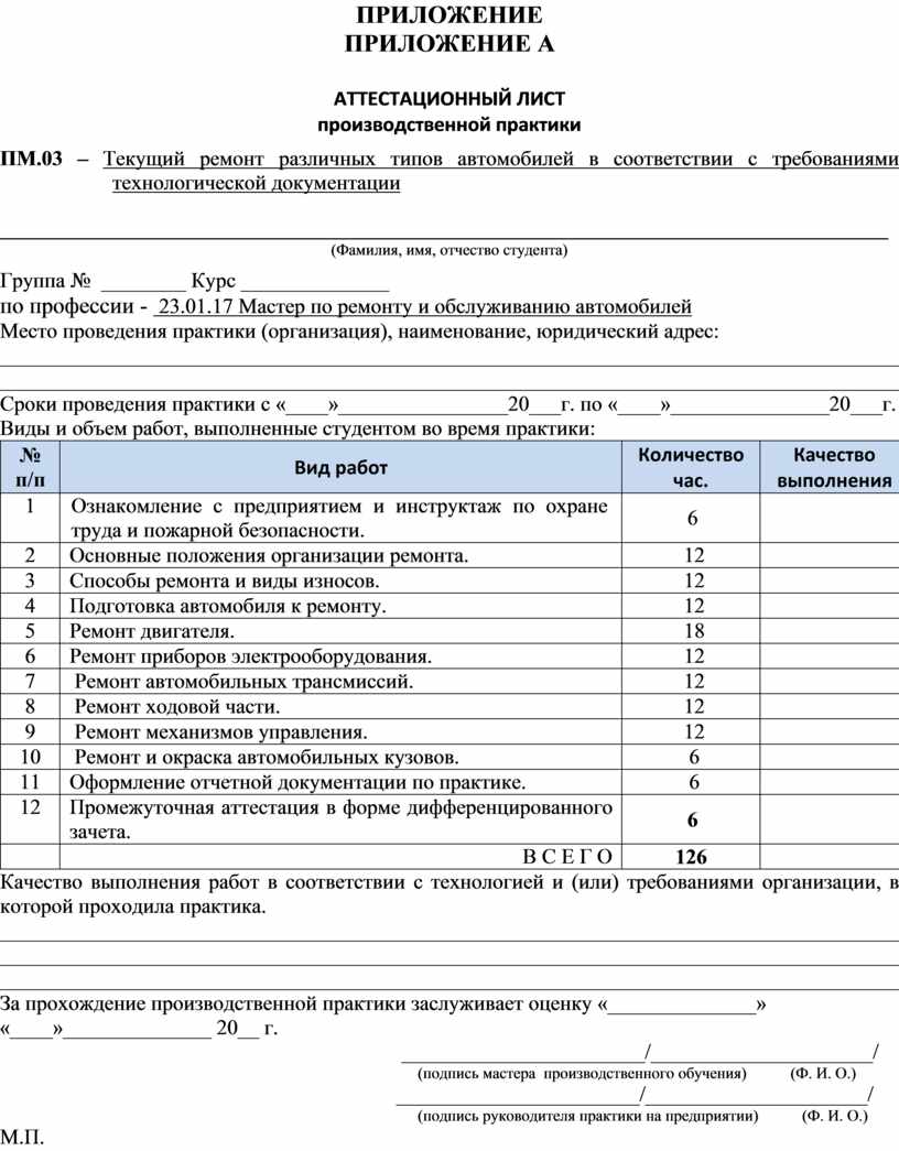 - оценка выполнения работ во время производственной практике; - аттестационный лист
