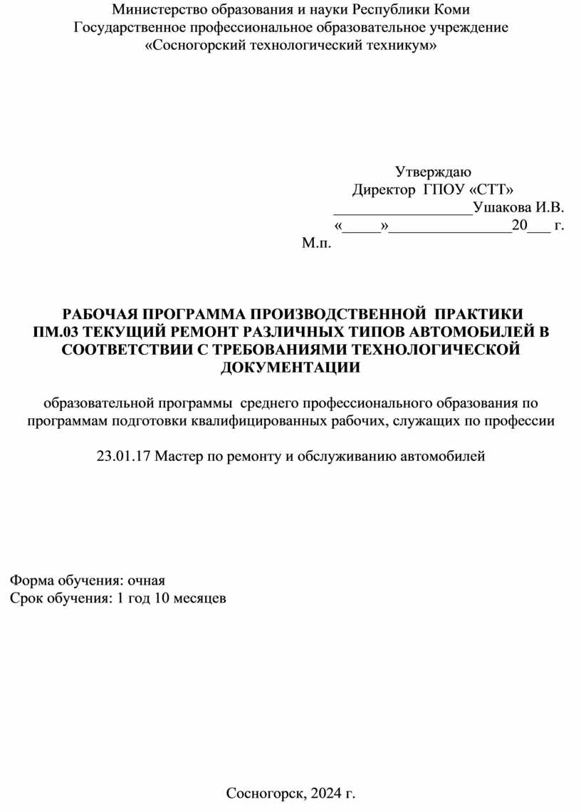 Утверждаю Директор ГПОУ «CТТ» __________________Ушакова И.В. «_____»________________20___ г. М.п. |