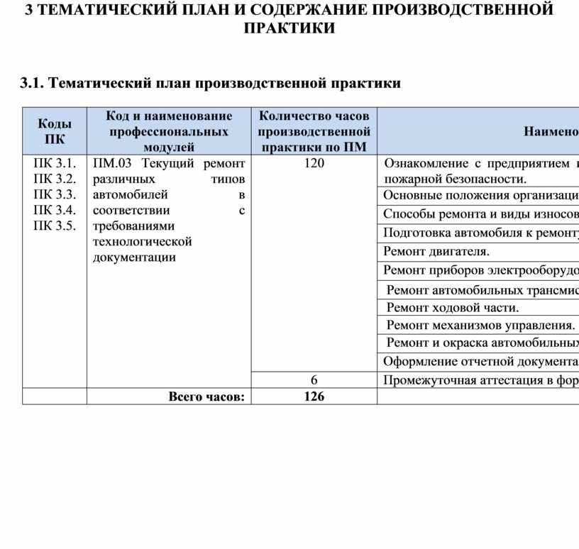 ПМ.03 – Текущий ремонт различных типов автомобилей в соответствии с требованиями технологической документации