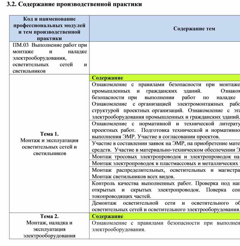 Рабочая программа производственной практики профессионального модуля ПМ.03 Выполнение работ при монтаже и наладке электрооборудования, осветительных сетей и светильников разработана на основе требований: