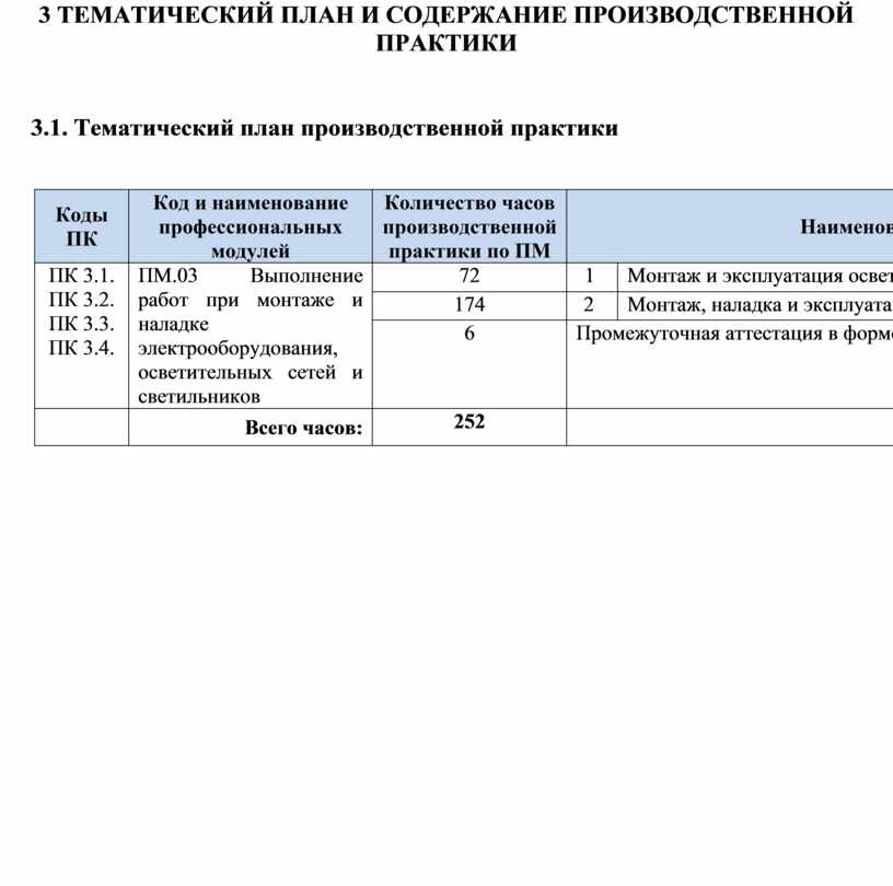 тематический план и содержание производственной практики…………………………………....................................................... |