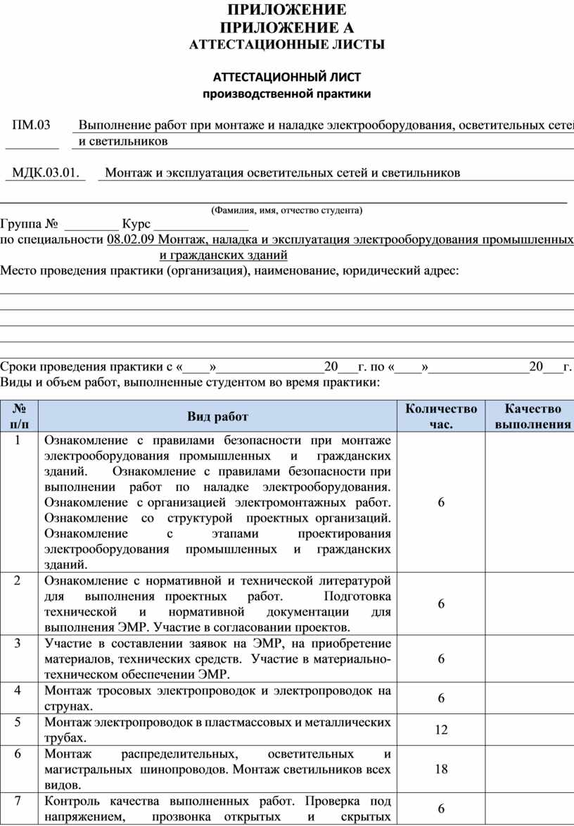 ПРИЛОжениЕ А (Аттестационные листы)……………….…………………………. |