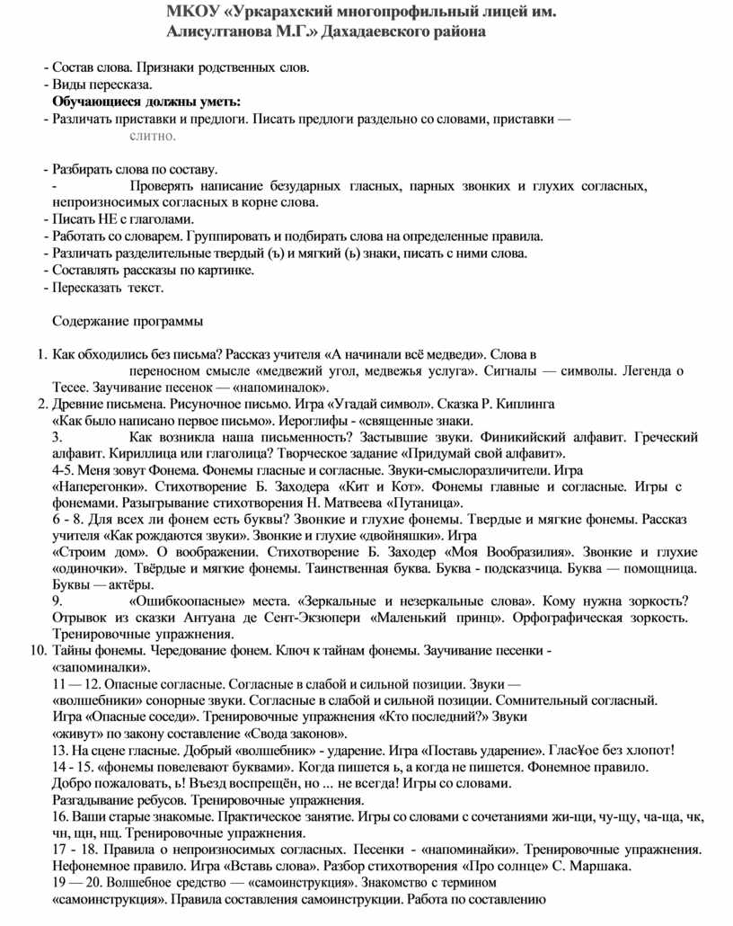Программа данного курса позволяет показать учащимся, как увлекателен, разнообразен, неисчерпаем мир слова, мир русской грамоты. Это имеет большое значение для формирования подлинных познавательных интересов как основы учебной деятельности. В процессе изучения грамматики школьники могут увидеть «волшебство знакомых слов»; понять, что обычные слова достойны изучения и внимания. Воспитание интереса к