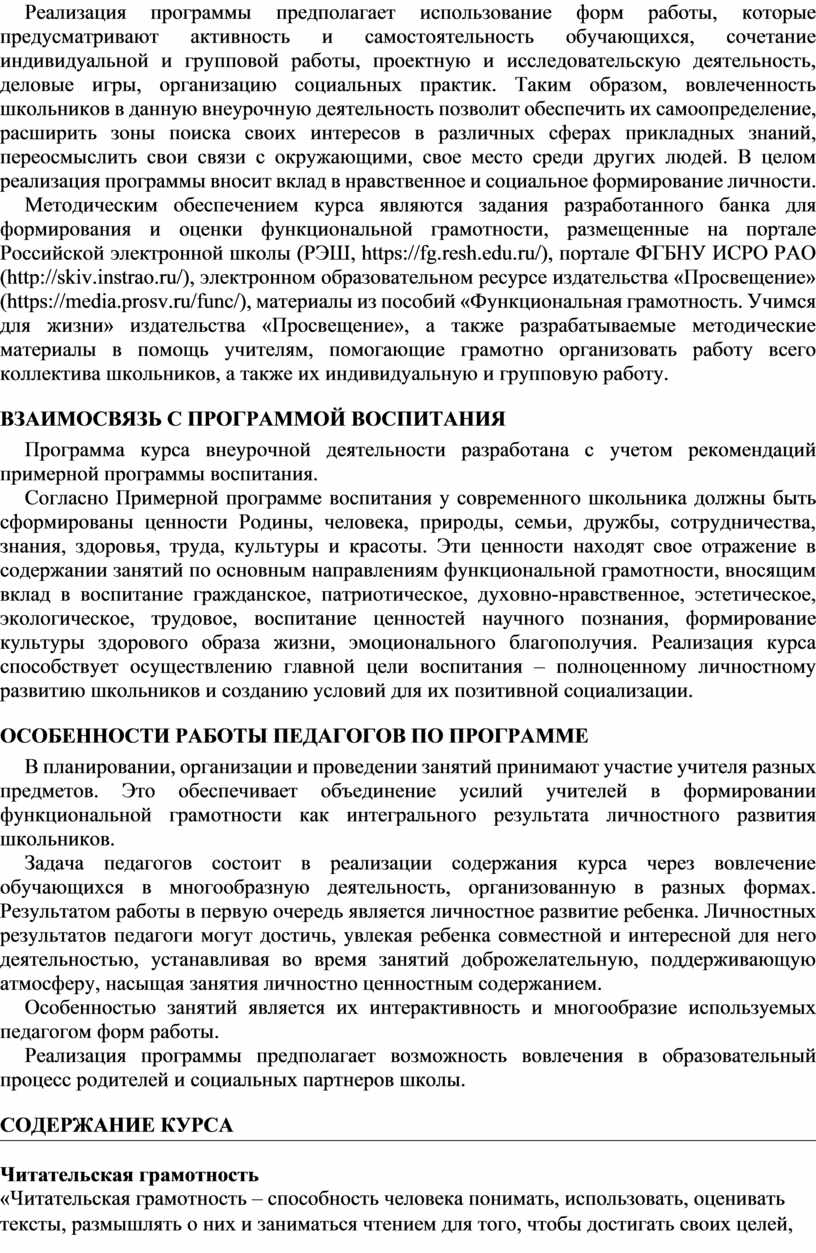 Программа курса внеурочной деятельности «Функциональная грамотность: учимся для жизни» предлагает системное предъявление содержания, обращающегося к различным направлениям функциональной грамотности.