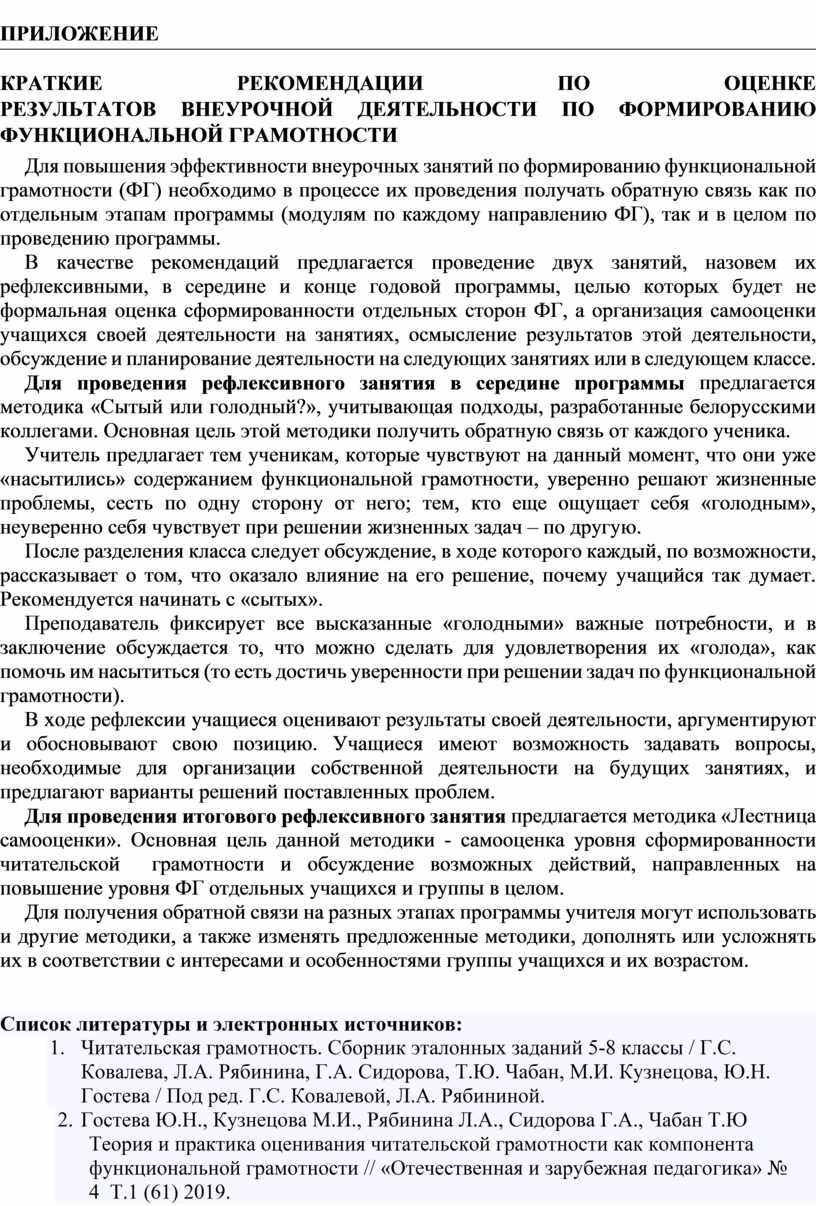 2. Гостева Ю.Н., Кузнецова М.И., Рябинина Л.А., Сидорова Г.А., Чабан Т.Ю Теория и практика оценивания читательской грамотности как компонента функциональной грамотности // «Отечественная и зарубежная педагогика» № 4 Т.1 (61) 2019.