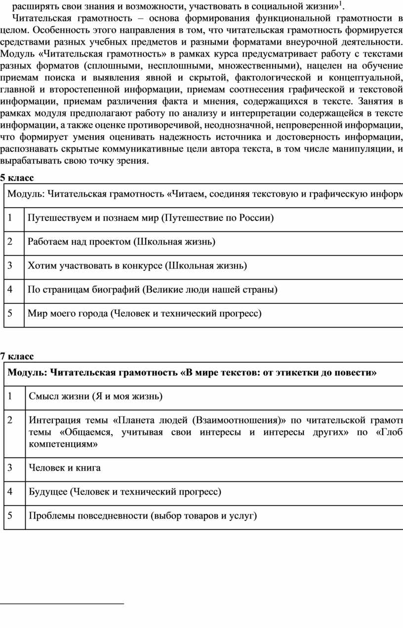Модуль: Читательская грамотность «В мире текстов: от этикетки до повести» |