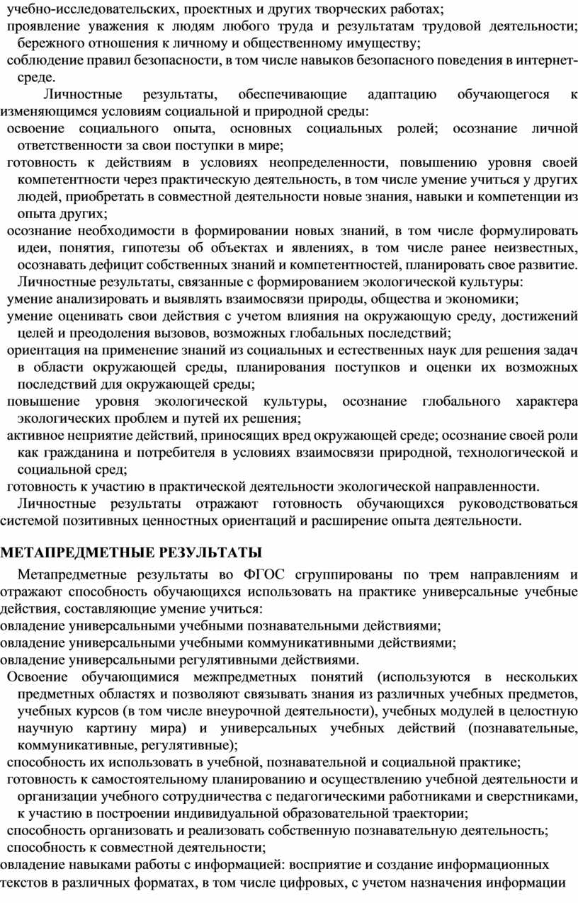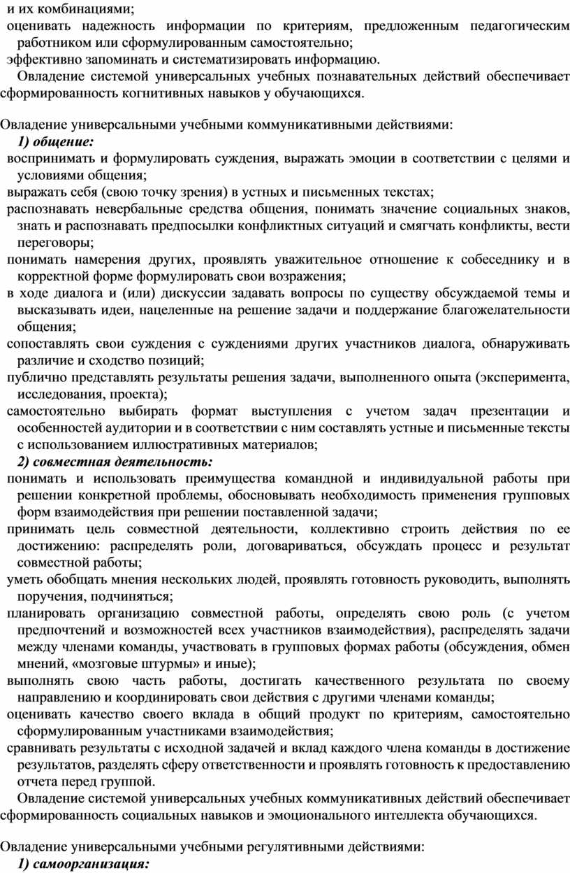 Освоение обучающимися межпредметных понятий (используются в нескольких предметных областях и позволяют связывать знания из различных учебных предметов, учебных курсов (в том числе внеурочной деятельности), учебных модулей в целостную научную картину мира) и универсальных учебных действий (познавательные, коммуникативные, регулятивные);