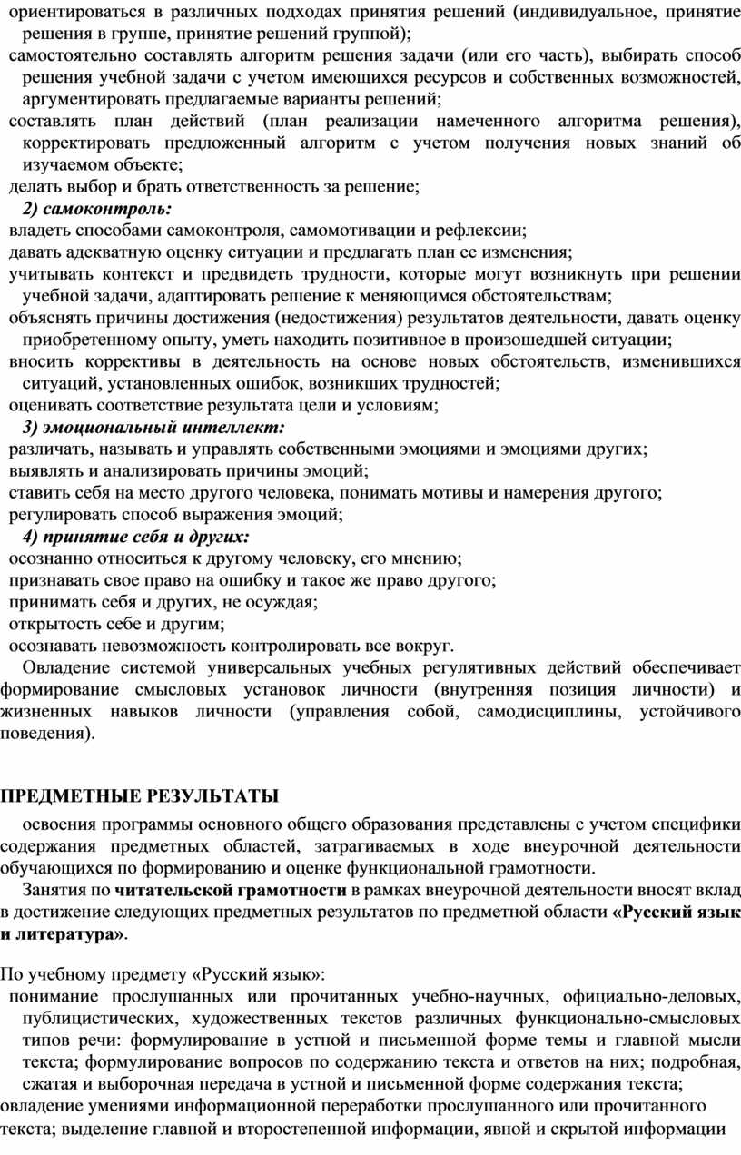 Занятия в рамках программы направлены на обеспечение достижений обучающимися следующих личностных, метапредметных и предметных образовательных результатов. Они формируются во всех направлениях функциональной грамотности, при этом определенные направления создают наиболее благоприятные возможности для достижения конкретных образовательных результатов.