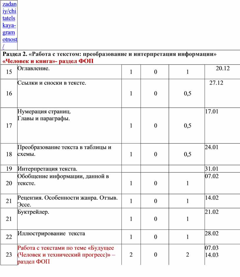Познание Работа с текстом: преобразование и интерпретация.6 часов