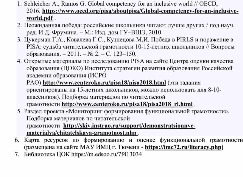 4. Schleicher A., Ramos G. Global competency for an inclusive world // OECD, 2016. https://www.oecd.org/pisa/aboutpisa/Global-competency-for-an-inclusive-world.pdf .