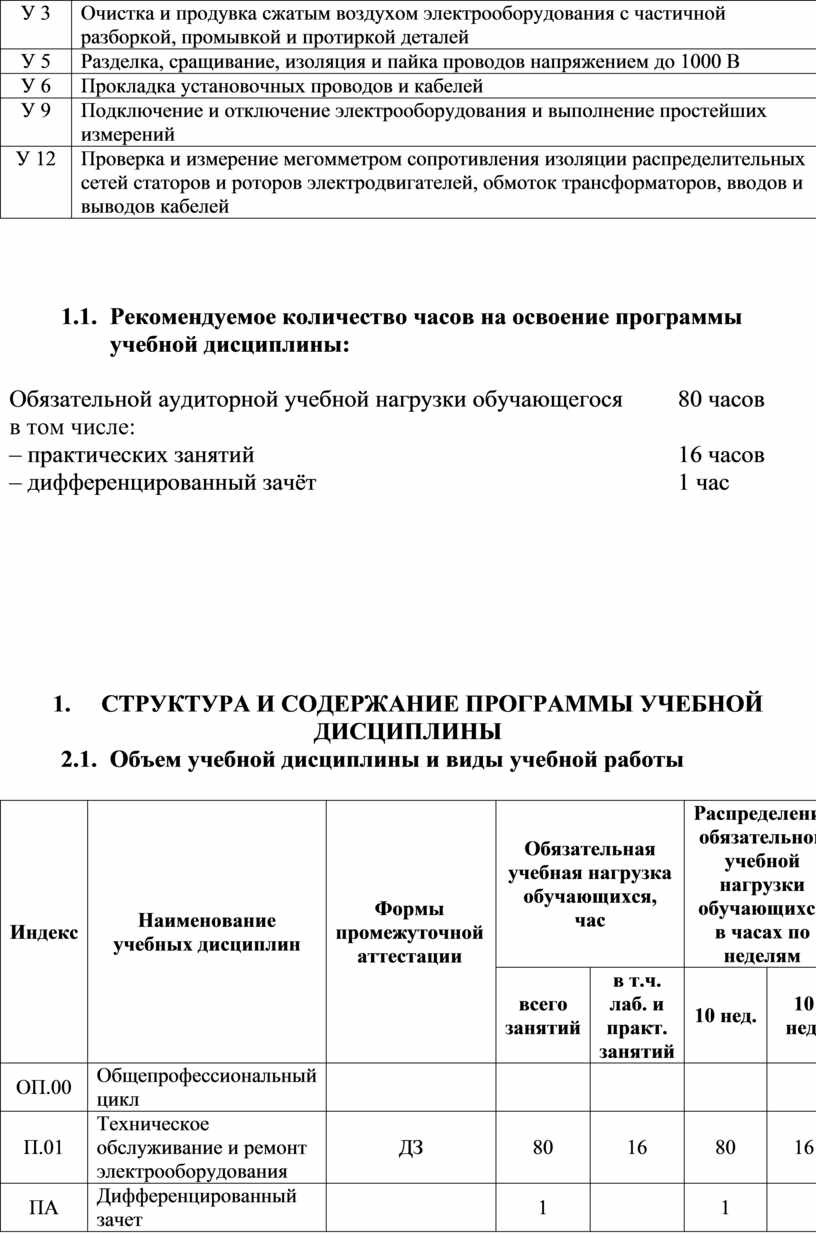 Рабочая программа учебной дисциплины «Техническое обслуживание и ремонт электрооборудования» разработана в соответствии с требованиями основной программы профессионального обучения (далее – ОППО) по профессии 19861 Электромонтер по ремонту и обслуживанию электрооборудования 2-го разряда