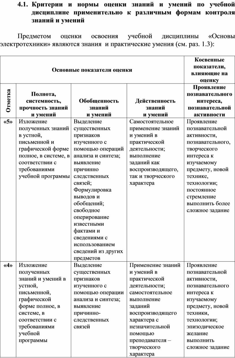 4.2. Критерии и нормы оценки знаний и умений по учебной дисциплине применительно к различным формам контроля знаний и умений
