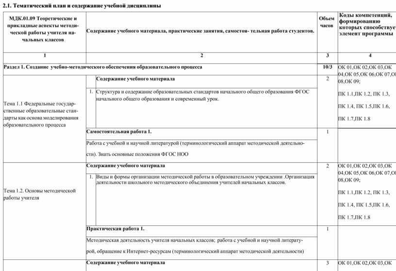 МДК 01.09 Теоретические и прикладные аспекты методической работы учителя начальных классов.