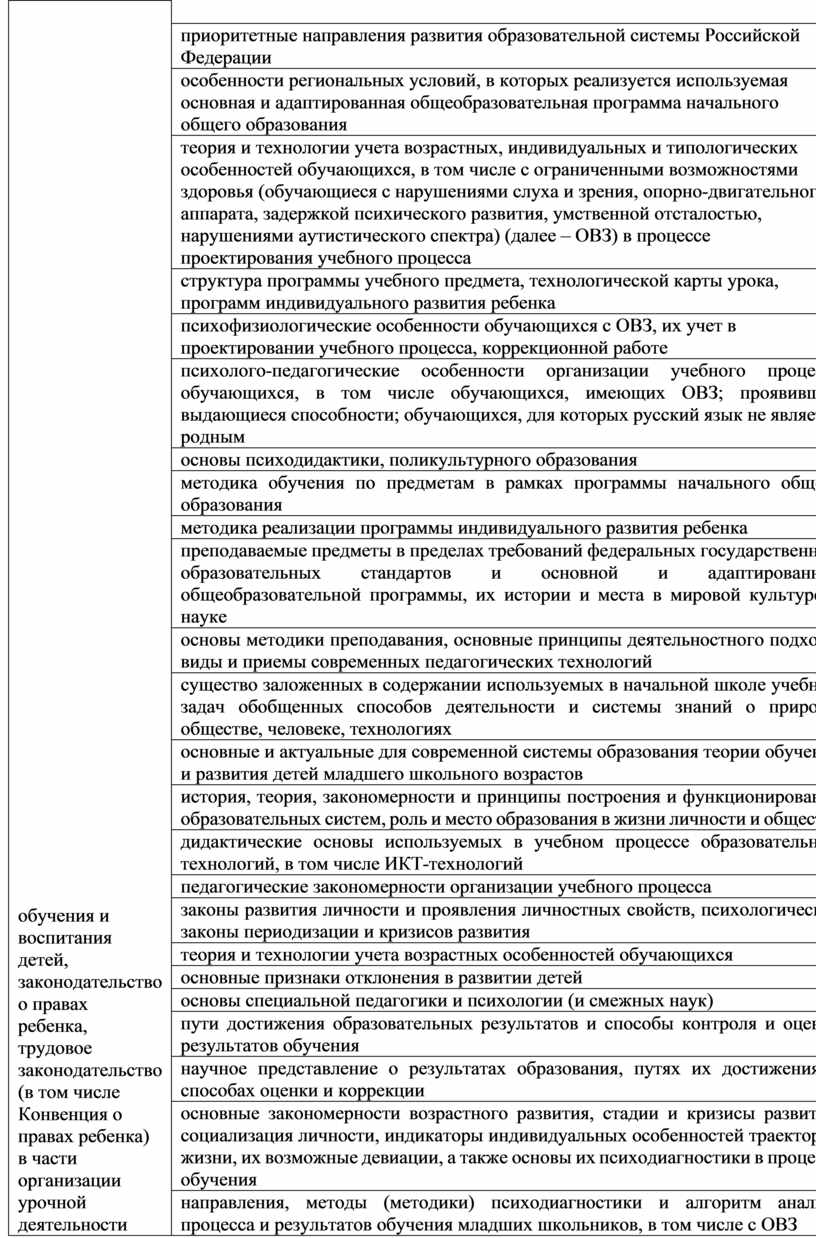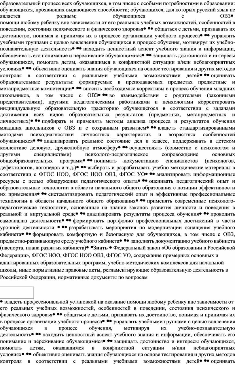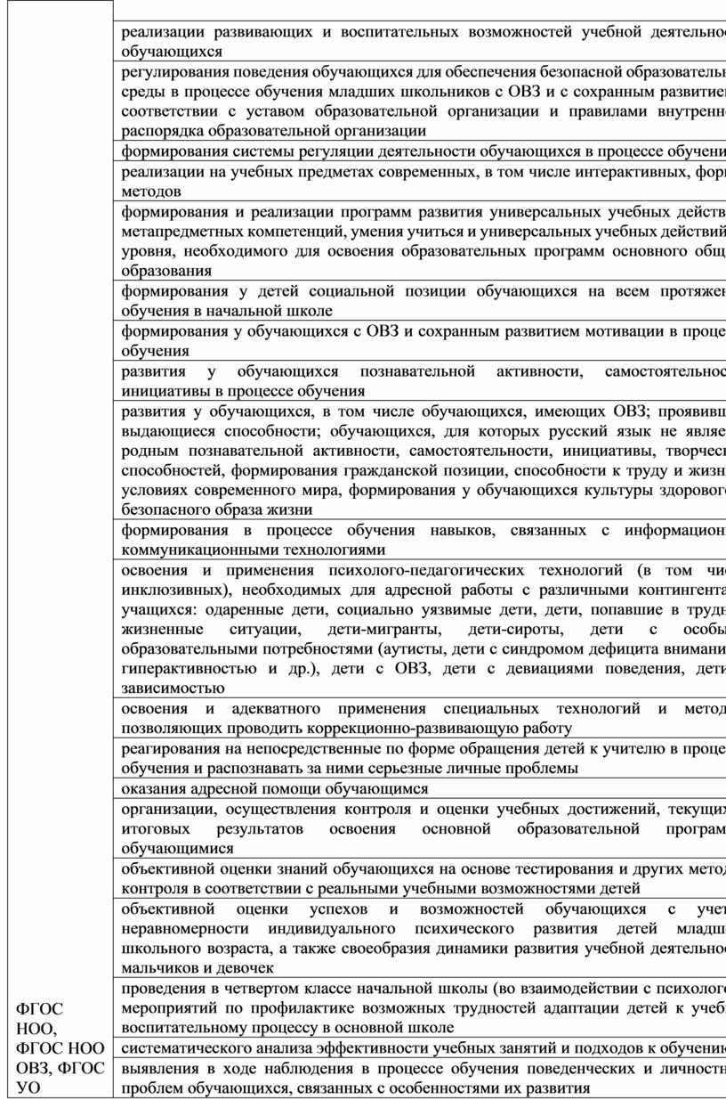 осуществления профессиональной деятельности в соответствии с требованиями ФГОС НОО, ФГОС НОО ОВЗ, ФГОС УО |