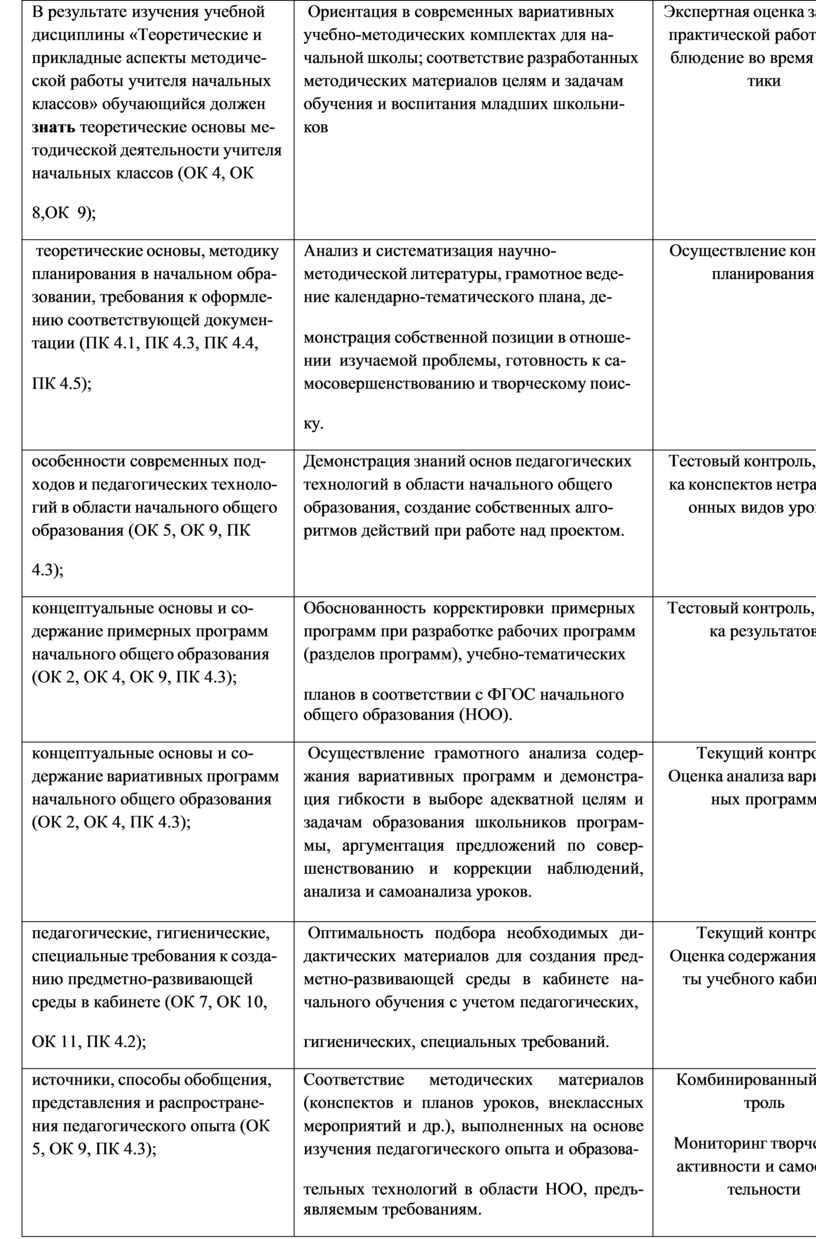 В результате изучения учебной дисциплины «Теоретические и прикладные аспекты методиче- ской работы учителя начальных классов» обучающийся должен знать теоретические основы ме- тодической деятельности учителя начальных классов (ОК 4, ОК 8,ОК 9); |