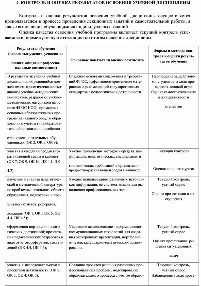 4. КОНТРОЛЬ И ОЦЕНКА РЕЗУЛЬТАТОВ ОСВОЕНИЯ УЧЕБНОЙ ДИСЦИПЛИНЫ
