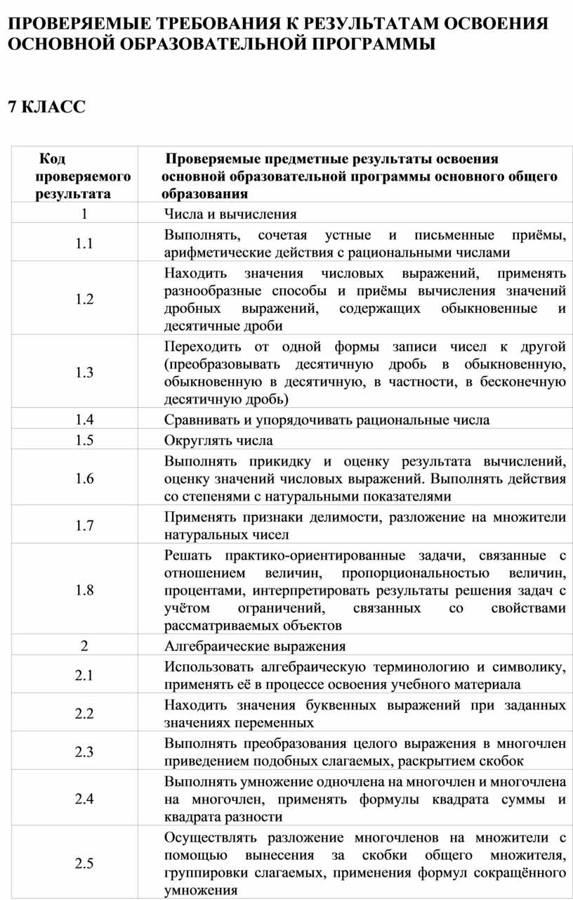 ПРОВЕРЯЕМЫЕ ТРЕБОВАНИЯ К РЕЗУЛЬТАТАМ ОСВОЕНИЯ ОСНОВНОЙ ОБРАЗОВАТЕЛЬНОЙ ПРОГРАММЫ