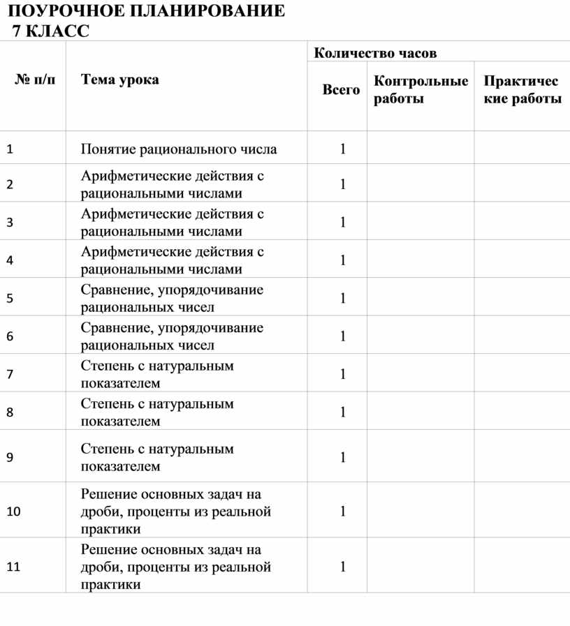 Рабочая программа по алгебре 7 класса составлена для индивидуального обучения, рассчитана на 2 часа в неделю, всего 68 часов. В рабочей программе предусмотрено 5 контрольных работ