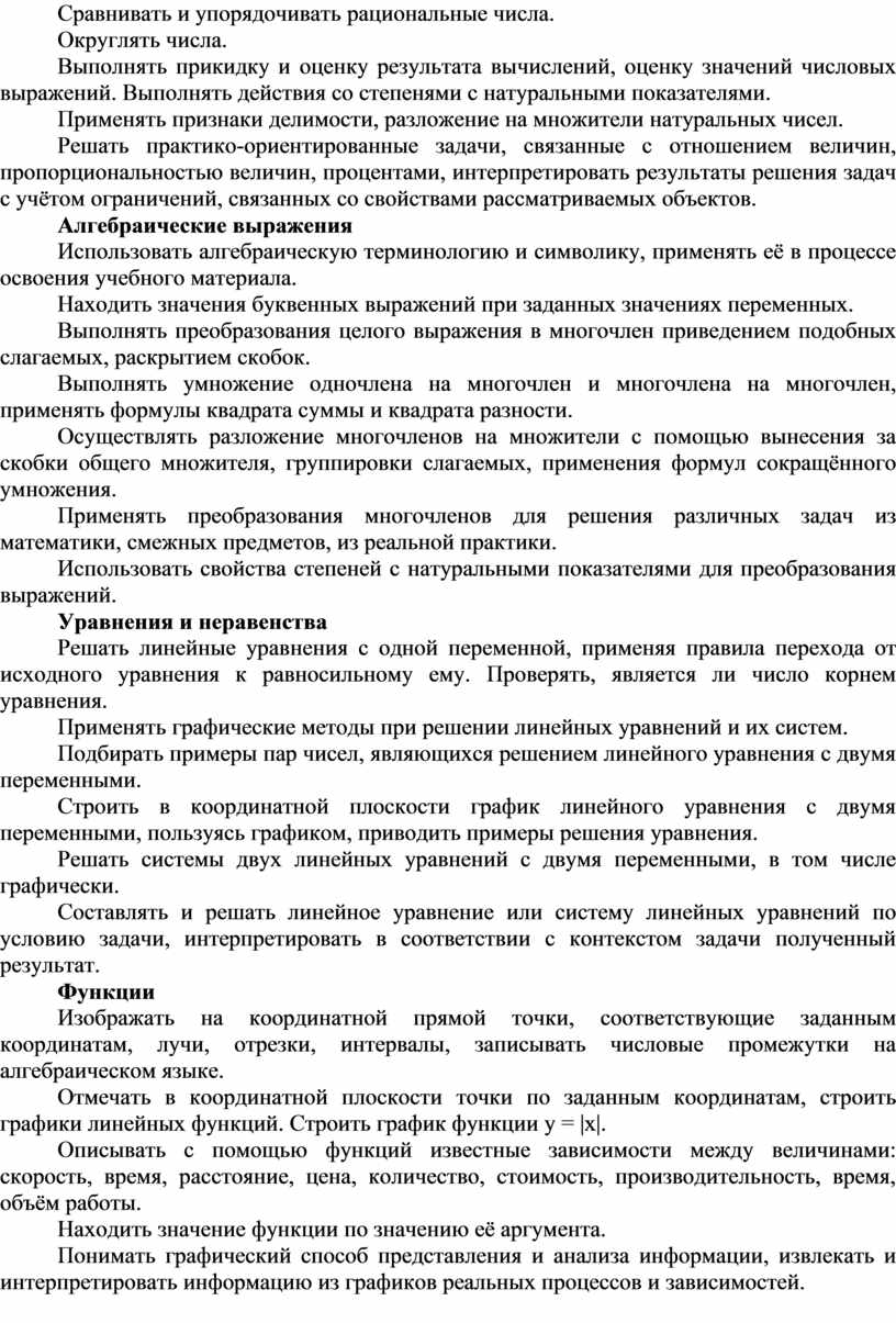 Содержание функционально-графической линии нацелено на получение обучающимися знаний о функциях как важнейшей математической модели для описания и исследования разнообразных процессов и явлений в природе и обществе. Изучение материала способствует развитию у обучающихся умения использовать различные выразительные средства языка математики – словесные, символические, графические, вносит вклад в формирование представлений о роли математики в развитии цивилизации и культуры.