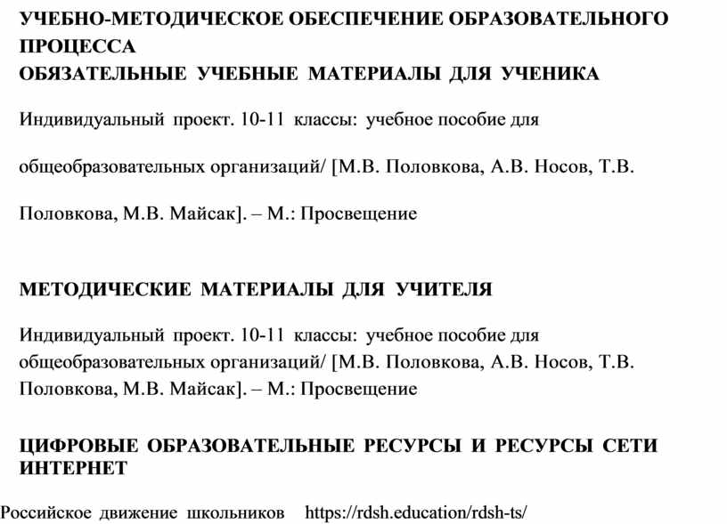 Индивидуальный проект. 10-11 классы: учебное пособие для общеобразовательных организаций/ [М.В. Половкова, А.В. Носов, Т.В.