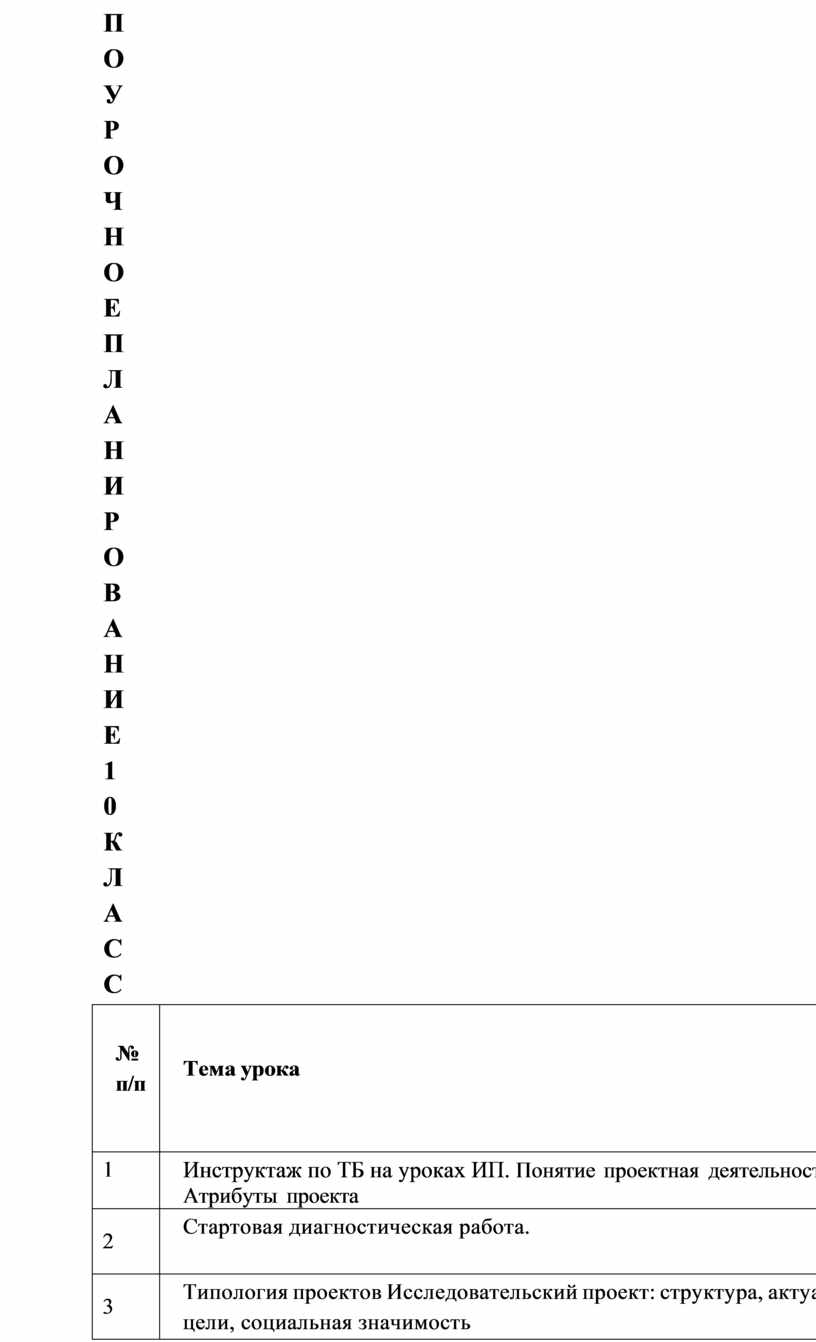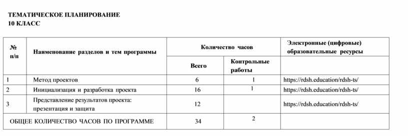 ТЕМАТИЧЕСКОЕ ПЛАНИРОВАНИЕ 10 КЛАСС