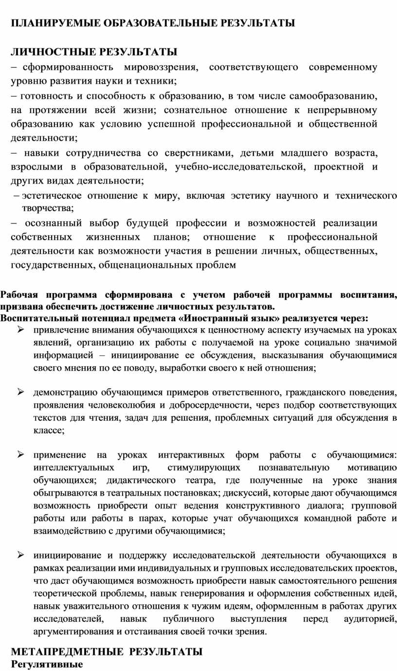 Программа составлена на основе требований к результатам освоения ООП СОО, представленных в ФГОС СОО, а также на основе характеристики планируемых результатов духовно-нравственного развития, воспитания и социализации обучающихся, представленной в федеральной рабочей программе воспитания.