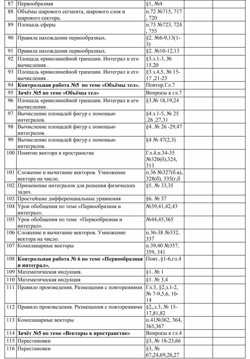 Уравнение cosx = а. Уравнение sinx = а. Уравнение tgx = а. Тригонометрические уравнения, сводящиеся к алгебраическим. Однородные уравнения. Методы замены неизвестного и разложения на множители. Метод оценки левой и правой частей тригонометрического уравнения. Системы тригонометрических уравнений. Тригонометрические неравенства. Обобщающий урок по теме: «Тригонометрические уравнения». Контрольная работа №8 по теме: «Тригонометрические уравнения».