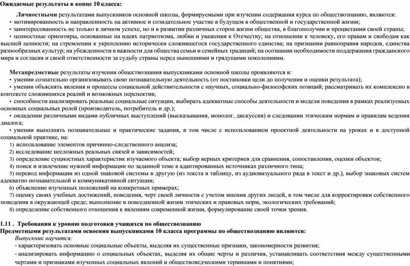 1.11 . Требования к уровню подготовки учащихся по обществознанию