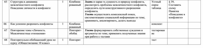 Знать и харак-ть сущность и природу конфликта, рассмотреть проблемы межличностного конфликта, определить пути конструктивного разрешения конфликта. Уметь осуществлять комплексный поиск, систематизацию социальной информации по теме, сравнивать, анализировать, делать выводы |