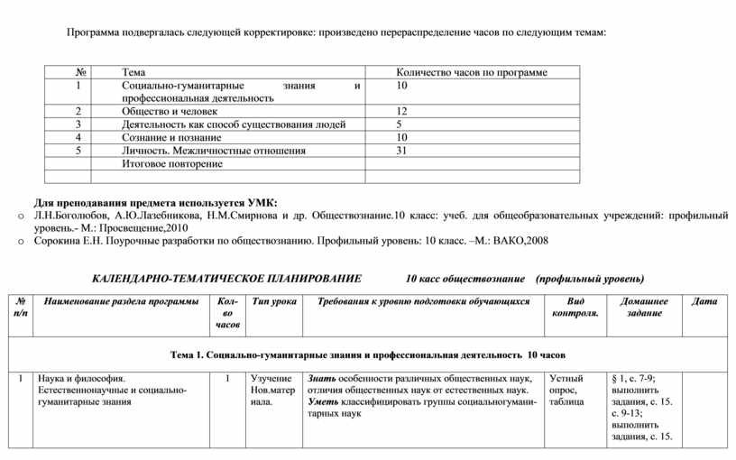 Программа подвергалась следующей корректировке: произведено перераспределение часов по следующим темам: