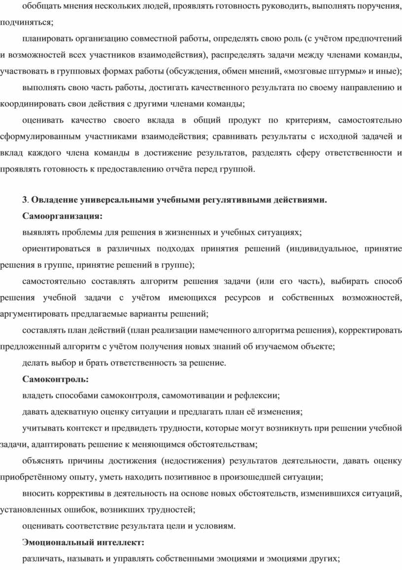 способность действовать в условиях неопределённости, открытость опыту и знаниям других, повышать уровень своей компетентности через практическую деятельность, в том числе умение учиться у других людей; осознавать в совместной деятельности новые знания, навыки и компетенции из опыта других; навык выявления и связывания образов, способность формирования новых знаний, в том числе способность формулировать идеи, понятия, гипотезы об объектах и явлениях, в том числе ранее неизвестных, осознавать дефицит собственных знаний и компетентностей, планировать своё развитие;